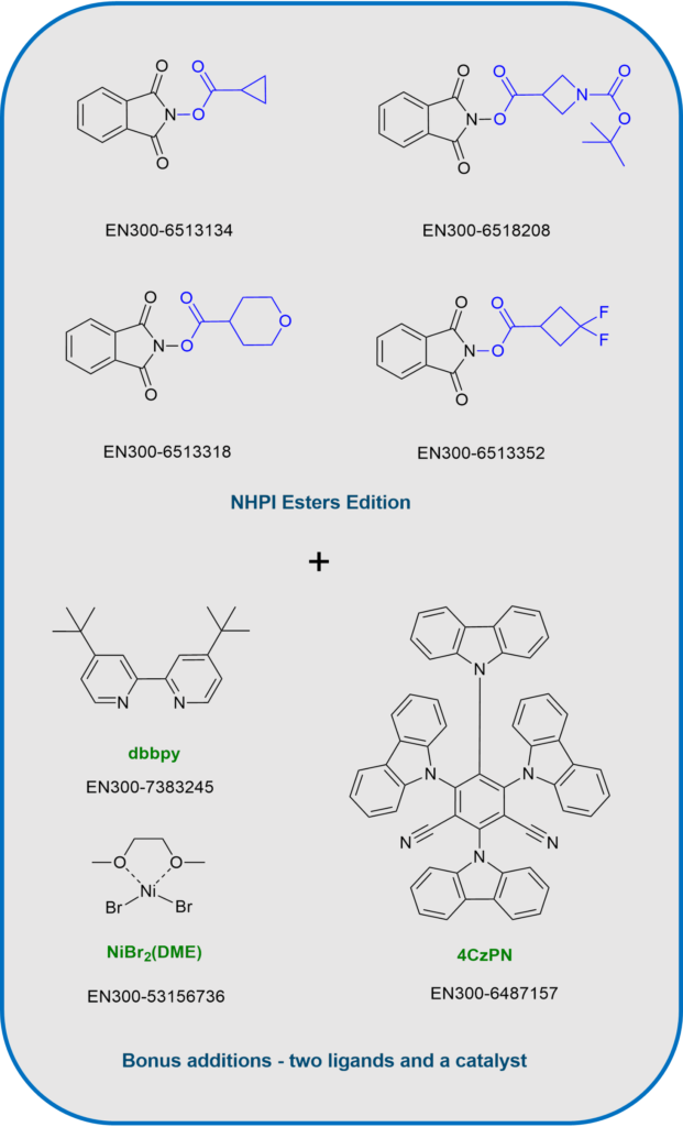 - 包含活化的NHPI酯(N-羟基邻苯二甲酰亚胺酯)——是实现温和条件下脱羧生成C(sp³)自由基的理想底物。