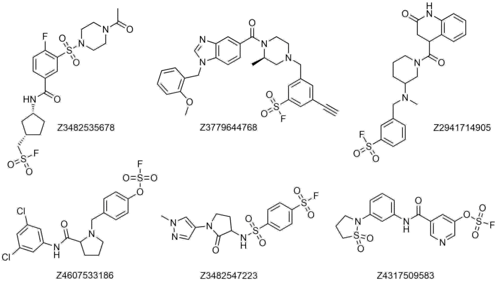 共价筛选库:640 种磺酰氟化合物,以 10 mM 浓度预分装于 DMSO 溶液中(通常为96孔板或384孔板格式)