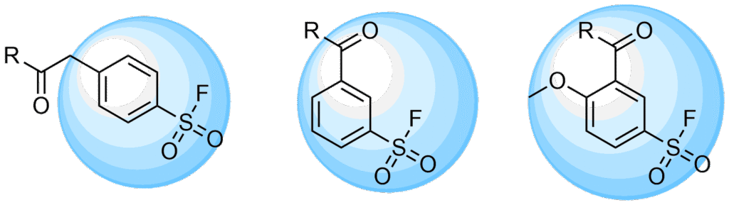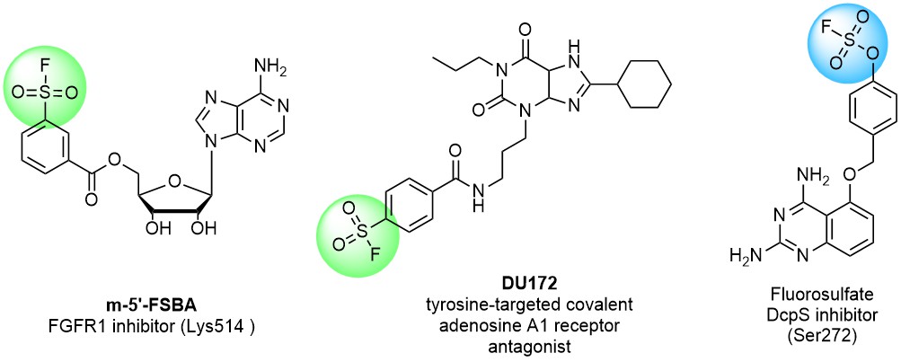 氟磺酸酯、氨磺酰氟以及烷基/芳基/杂芳基磺酰氟之间,在反应活性上存在显著差异,这使得设计具有选择性的共价结合剂成为可能。例如,据报道,反应活性较低的氟磺酸酯与酪氨酸(Tyr)的酚羟基的反应效果,要优于磺酰氟和氨磺酰氟。
