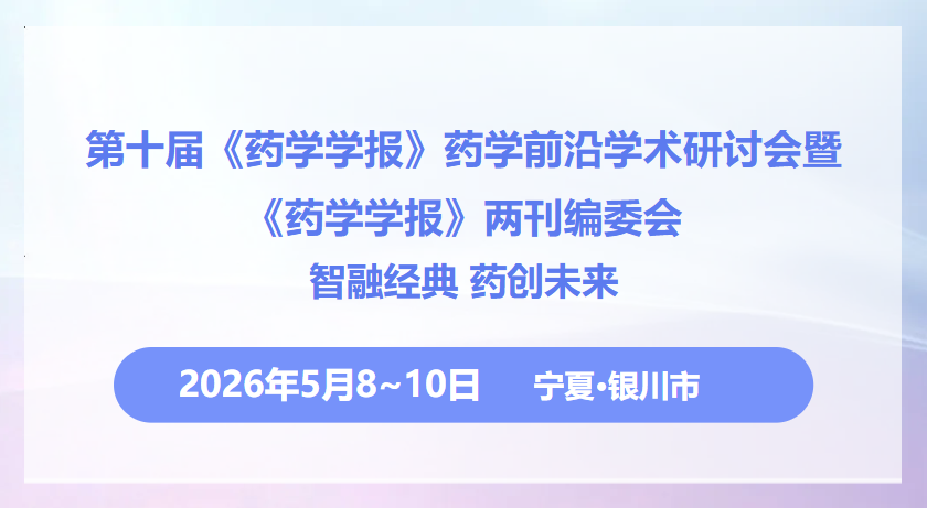 由《药学学报》中、英文两刊编委会与宁夏医科大学共同主办的 “第十届《药学学报》药学前沿学术研讨会暨《药学学报》两刊编委会会议” ,定于2026年5月8日至10日在宁夏银川隆重召开。